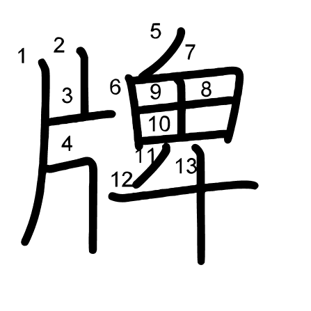 Main radical: 片 (91) Radicals:
