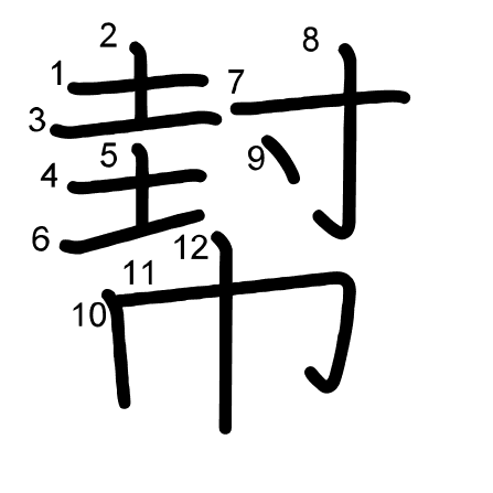 Main radical: 巾 (50) Radicals: