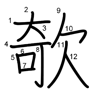 Main radical: 欠 (76) Radicals: