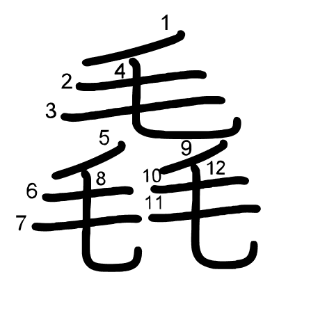 Main radical: 毛 (82) Radicals: