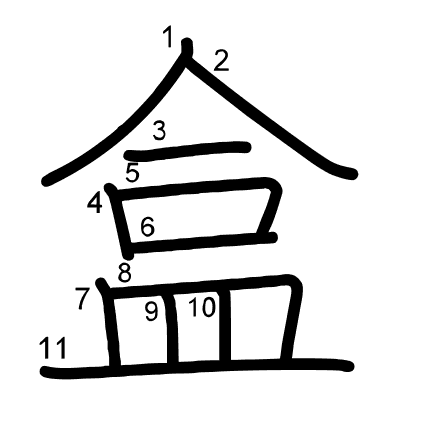 Main radical: 皿 (108) Radicals: