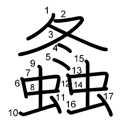 Main radical: 虫 (142) Radicals: