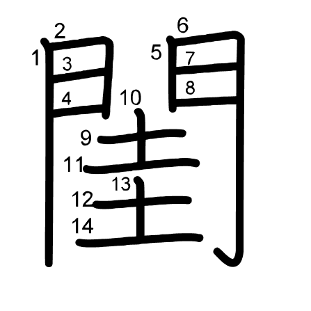 Hlavní radikál: 門 (169) Radikály: 耳 門 Džójó: 2