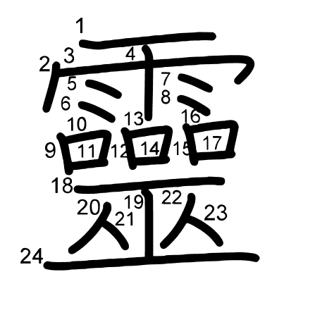 Hlavní radikál: 雨 (173) Radikály: