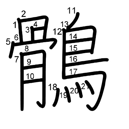 Hlavní radikál: 鳥 (196) Radikály: 广 Džójó: 9