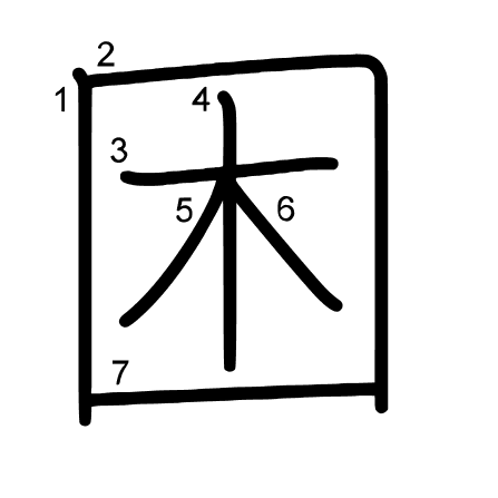 Hlavní radikál: 囗 (31) Radikály: 木 囗 Džójó: 6