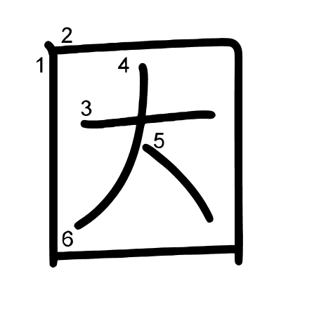 Hlavní radikál: 囗 (31) Radikály: 大 囗 Džójó: 5