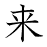 Readings: rai, tai, ku.ru, kita.ru, kita.su, ki.tasu, ki.taru, ki, ko, kuri, kuru, goro, sa