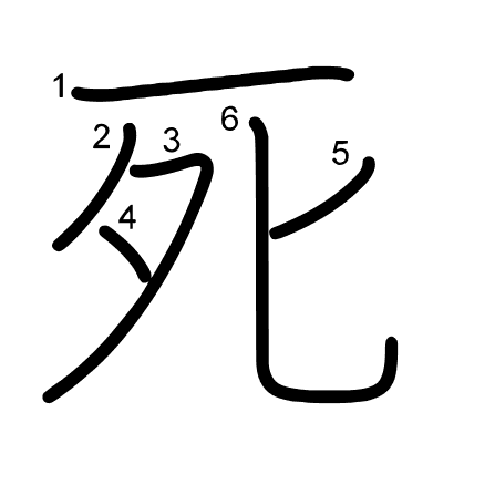 Main radical: 歹 (78) Radicals: Jouyou: 3