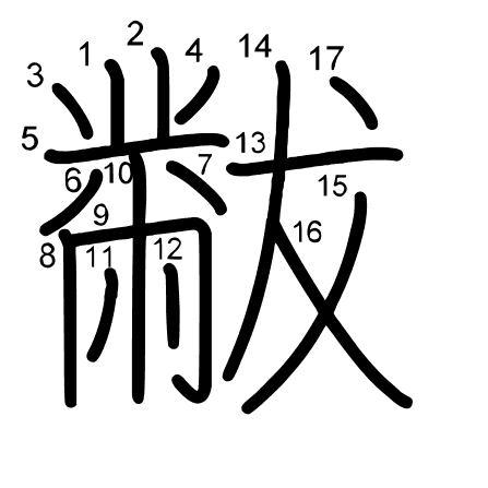 lap robe, embroidery patternMain radical: 黹 (204) Radicals: ハ 丶 冂 攵 黹 并