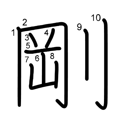 Hlavný radikál: 口 (30) Radikály: 口 儿 厶 夂 Džójó: 8
