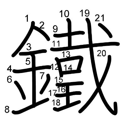 Hlavný radikál: 金 (167) Radikály: 金 口 ⺌ 田 冖