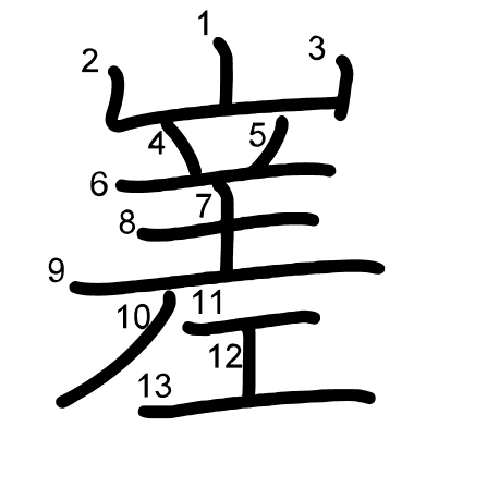 Hlavní radikál: 羊 (123) Radikály: ノ ヨ 王 口 并 羊