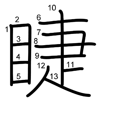 Hlavní radikál: 貝 (154) Radikály: ノ 一 貝 目 ハ 月 Džójó: 8