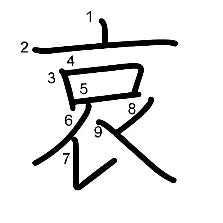 Hlavný radikál: 口 (30) Radikály: 衣 口 亠 Džójó: 8