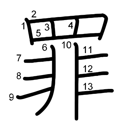Main radical: ⽹ (122) Radicals: 罒 非 Jouyou: 5