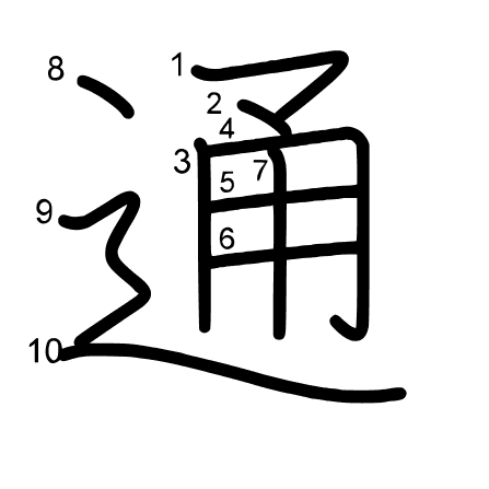 Main radical: 辵 (162) Radicals: 辶 用 マ Jouyou: 2
