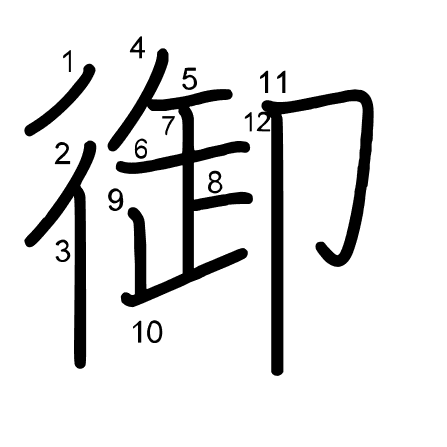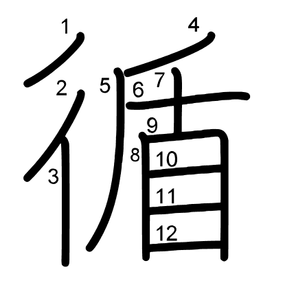 Main radical: 彳 (60) Radicals: ノ 止 卩 彳 Jouyou: 8