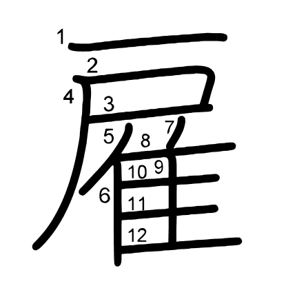 Main radical: 尸 (44) Radicals: ノ 尸 禸 Jouyou: 5