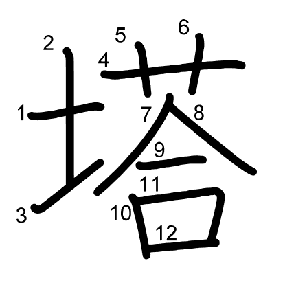 Hlavný radikál: 土 (32) Radikály: 十 辛 土 又 立 亠 卩 Džójó: 5