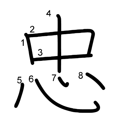 Hlavný radikál: 心 (61) Radikály: | 一 心 Džójó: 4