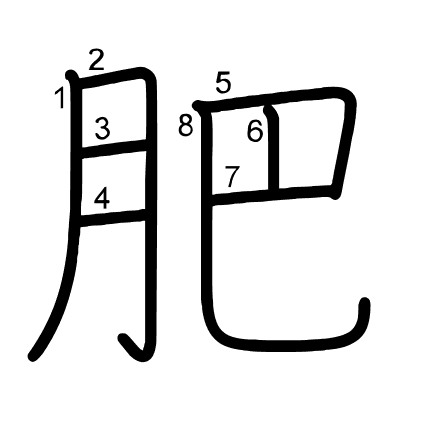 Hlavný radikál: 肉 (130) Radikály: 月 巴 Džójó: 5