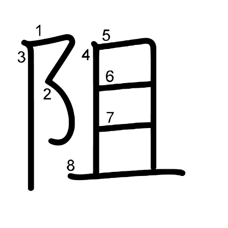Hlavný radikál: 刀 (18) Radikály: 刂 至 土 厶 Džójó: 8