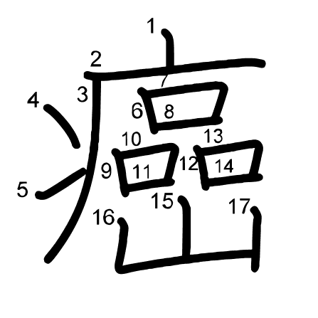 Main radical: 心 (61) Radicals: 艮 心 爪 犭 豸 Jouyou: 8