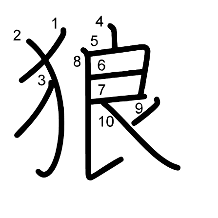 Hlavní radikál: 犬 (94) Tahy: 10 obrázek | animace | tabulka