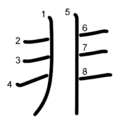 Hlavní radikál: 非 (175) Tahy: 8 obrázek | animace | tabulka