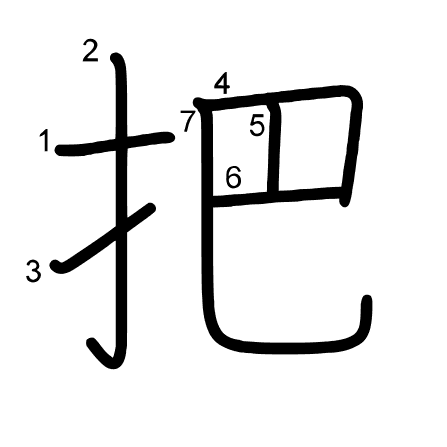 Hlavní radikál: 手 (64) Tahy: 7 obrázek | animace | tabulka