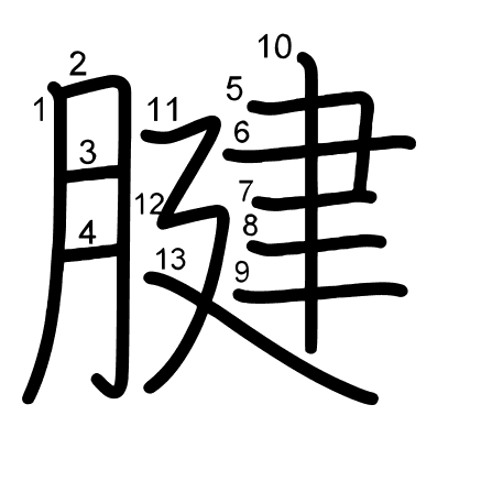 Hlavný radikál: 肉 (130) Ťahy: 13 obrázok (png) | animácie (svg) | tabuľka (svg)