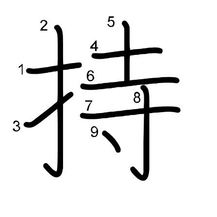 Hlavný radikál: 手 (64) Ťahy: 9 obrázok (png) | animácie (svg) | tabuľka (svg)