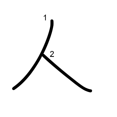 Hlavní radikál: 人 (9) Tahy: 2 obrázek | animace | tabulka