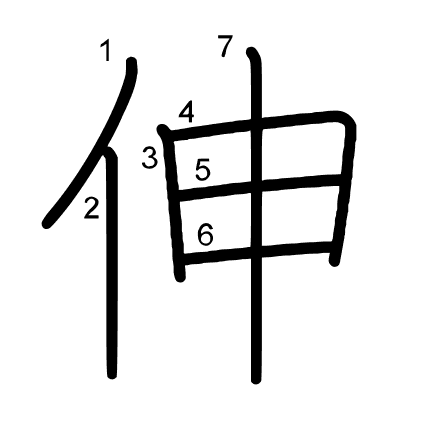 Main radical: 人 (9) Strokes: 7 picture (png) | animation (svg) | table (svg)