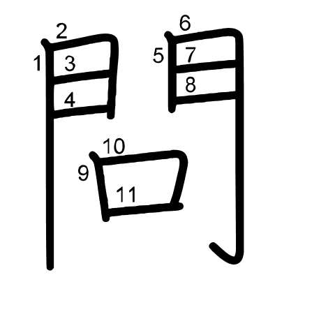 Hlavní radikál: 門 (169) Tahy: 11 obrázek | animace | tabulka