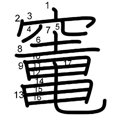 Hlavný radikál: 穴 (116) Radikály: