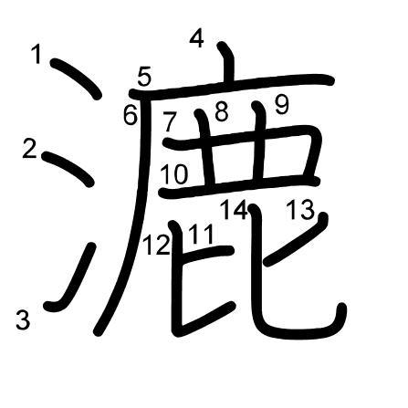 Hlavný radikál: 水 (85) Radikály: 鹿 广