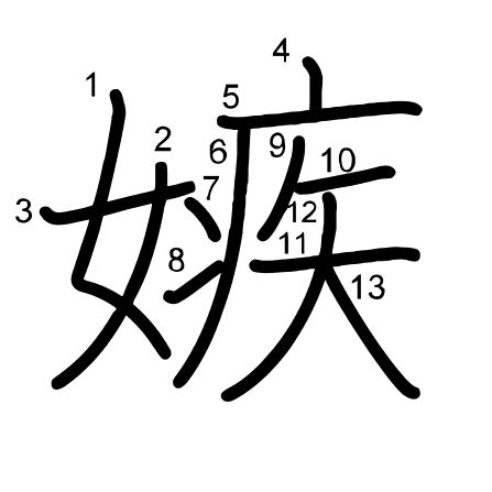 Hlavní radikál: 女 (38) Radikály: