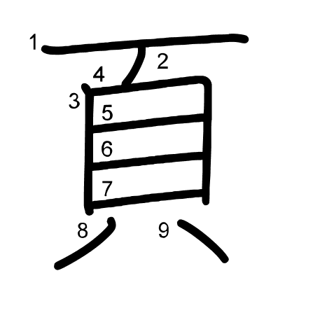 Hlavní radikál: 頁 (181) Radikály: