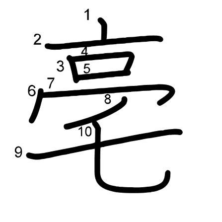 Main radical: 亠 (8) Radicals: