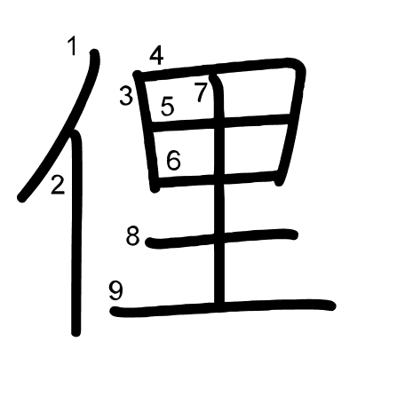 Hlavní radikál: 人 (9) Radikály: