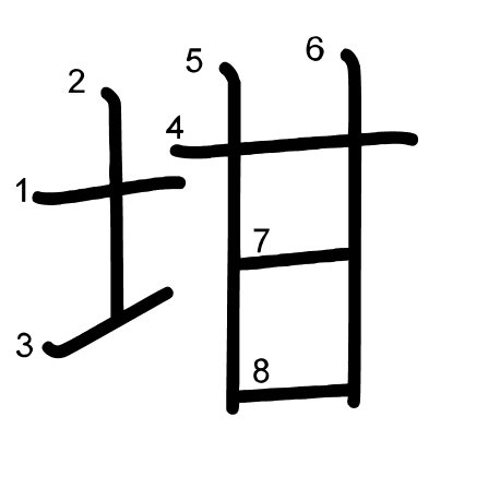 Hlavní radikál: 土 (32) Radikály: