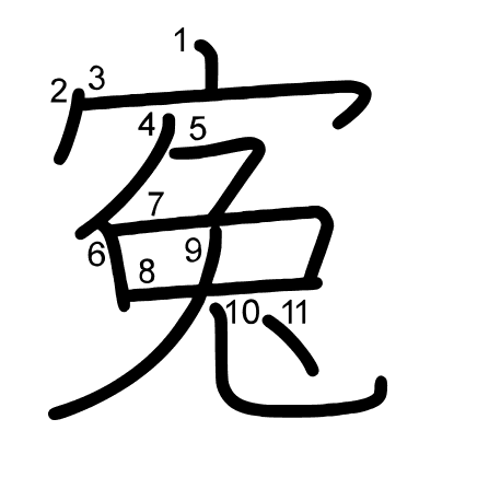 Main radical: 宀 (40) Radicals: