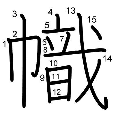 Hlavní radikál: 巾 (50) Radikály: