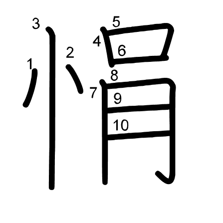Hlavní radikál: 心 (61) Radikály: