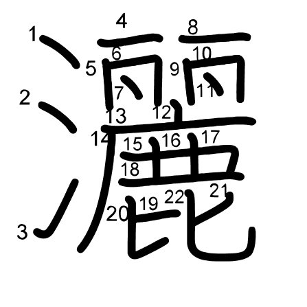 Main radical: 水 (85) Radicals: 鹿 广