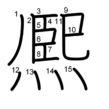 Hlavní radikál: 火 (86) Radikály: