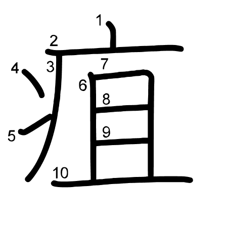 Hlavný radikál: 疒 (104) Radikály: