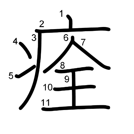 Main radical: 疒 (104) Radicals: